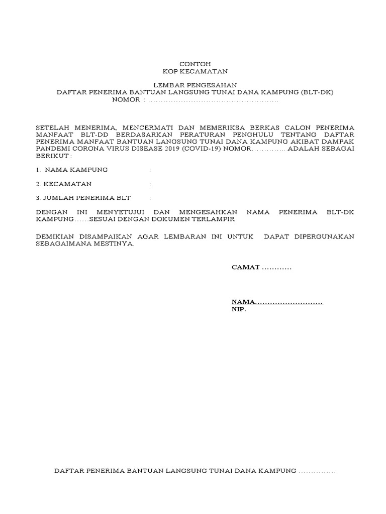 Contoh Surat Pengesahan Camat Pdf
